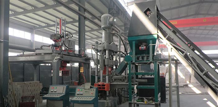 而推出新型液壓耐火材料壓磚機后,安全事故不再發生,因為設備是全自動控制的,下料、出塊都是設備自動完成的;效率大大得到提高,一次可生產多塊,生產周期為15s,不用擔心人工操作熟練程度對產量的影響;不管是什么異型產品,都可以通過更換模具的方式生產出來;工人勞動強度降低了、工作環境改善了,加速了企業向標準化、現代化、自動化方向發展。